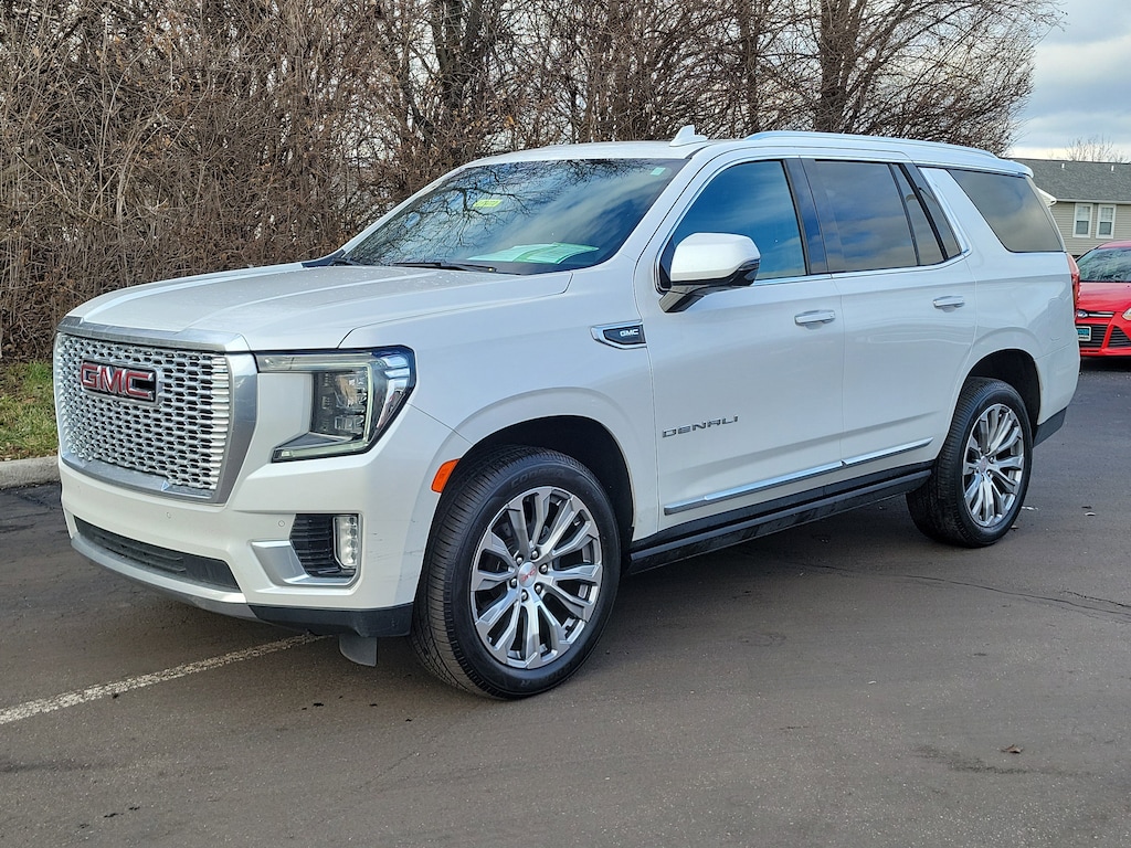 Have you ever wondered where to buy a Certified used car? Look no further! Jake Sweeney is here to Help. If you are in need of a new or used vehicle, we are offering you the ability to shop online and have your vehicle delivered to your home. Come visit us in store as well for a fun, fast, and easy car buying experience! White Frost Tricoat 2021 GMC Yukon Denali 4WD 10-Speed Automatic with Overdrive EcoTec3 6.2L V8 4WD, 12-Way Power Seat Adjusters, 15" Diagonal Multi-Color Head-Up Display, 2 Presets For Outside Rearview Mirrors, 3rd Row 60/40 Power-Folding Split-Bench Seat, Adaptive Cruise Control, Adaptive suspension, Advanced Security Package, Advanced Technology Package, Apple CarPlay/Android Auto, Auto-leveling suspension, Bright Front & Rear Door Sill Plates, Chrome Door Handles w/Body-Color Strip, Denali Premium Package, Dual Exhaust System, Dual-Pane Panoramic Power Sunroof, Enhanced Automatic Emergency Braking, Galvano Bodyside Moldings, Glass Breakage Sensor, Hands-Free Power Programmable Rear Liftgate, HD Surround Vision, Heated & Ventilated Driver & Front Passenger Seats, Heated 2nd Row Outboard Position Seats, Heated Automatic Steering Wheel, Heated Driver & Front Passenger Seats, Hill Descent Control, Inside Rear-View Auto-Dimming Mirror, Inside Rearview Auto-Dimming Rear Camera Mirror, Lane Change Alert w/Side Blind Zone Alert, Lane Keep Assist w/Lane Departure Warning, Leather steering wheel, Navigation System, Outside Heated Power-Adjustable Mirrors, Power Liftgate, Power Release 2nd Row Bucket Seats, Power Tilt & Telescopic Steering Column, Power-Retractable Assist Steps, Preferred Equipment Group 5SA, Rear Camera Mirror Washer, Rear Pedestrian Alert, Safety Alert Seat, Theft-Deterrent Alarm System, Turn signal indicator mirrors, Universal Home Remote, Vehicle Inclination Sensor, Vehicle Interior Movement Sensor, Wheel Locks, Wheels: 22" x 9" Bright Machined Aluminum.