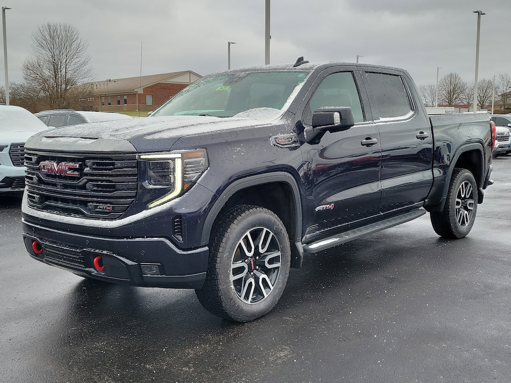 Have you ever wondered where to buy a Certified used car? Look no further! Jake Sweeney is here to Help. If you are in need of a new or used vehicle, we are offering you the ability to shop online and have your vehicle delivered to your home. Come visit us in store as well for a fun, fast, and easy car buying experience! Titanium Rush Metallic 2023 GMC Sierra 1500 AT4 4WD 10-Speed Automatic EcoTec3 6.2L V8 10-Speed Automatic, 4WD, Jet Black With Kalahari Accents Leather, 120-Volt Bed Mounted Power Outlet, 120-Volt Instrument Panel Power Outlet, 2 Charge/Data USB Ports Inside Center Console, 2 Type-C Charge-Only Rear USB Ports, 2 USB Ports, 220 Amp Alternator, 7 Speakers, Adaptive Cruise Control, Air Conditioning, AM/FM radio, Apple CarPlay/Android Auto, AT4 Preferred Package, AT4 Premium Package, Auto-Locking Rear Differential, Automatic temperature control, Auxiliary External Transmission Oil Cooler, Bed View Camera, Black Chrome Header & Grille Insert Bars, Block heater, Brake assist, Color-Keyed Carpeting Floor Covering, Compass, Deep-Tinted Glass, Driver Memory, Electric Rear-Window Defogger, Electrical Steering Column Lock, Electronic Stability Control, Floor-Mounted Center Console, Front Center Armrest, Front dual zone A/C, Front Prem Floor Liners w/Removable Carpet Insert, Front Rainsensing Wipers, GMC Connected Access Capable, HD Surround Vision, Heated 2nd Row Outboard Seats, Heated Driver & Front Outboard Passenger Seating, Heated front seats, Heated rear seats, Heated steering wheel, Heavy-Duty Air Filter, Hill Descent Control, Hitch Guidance, Hitch Guidance w/Hitch View, Illuminated entry, In-Vehicle Trailering App, Integrated Trailer Brake Controller, Keyless Open & Start, Lane Keep Assist w/Lane Departure Warning, LED Cargo Area Lighting, Memory seat, Multicolor 15" Diagonal Head-Up Display, Navigation System, Off-Road High Clearance Step (LPO), OnStar & GMC Connected Services Capable, Perimeter Lighting, Power Door Locks, Power driver seat, Power Front Passenger Windows w/Express Up/Down, Power Front Windows w/Driver Express Up/Down, Power Rake & Telescoping Steering Column, Power Rear Windows w/Express Down, Power Sliding Rear Window w/Rear Defogger, Power Sunroof, Preferred Equipment Group 4SB, Premium audio system: GMC Infotainment System, Premium Bose 7-Speaker Sound System, Push Button Start, Radio data system, Radio: Premium GMC Infotainment Audio System, Rain sensing wipers, Rear Camera Mirror, Rear Cross Traffic Braking, Rear Pedestrian Detection, Rear Prem Floor Liners w/Removable Carpet Insert, Rear Wheelhouse Liners, Rear window defroster, Red Recovery Hooks, Remote Vehicle Starter System, SiriusXM w/360L, Spray-On Pickup Bed Liner w/AT4 Logo, Steering Wheel Audio Controls, Technology Package, Telescoping steering wheel, Theft Deterrent System (Unauthorized Entry), Trailer Camera Provisions, Trailer Side Blind Zone Alert, Trailering Package, Trip computer, Ultrasonic Front & Rear Park Assist, Universal Home Remote, Ventilated Driver & Front Passenger Seats, Ventilated front seats, Wi-Fi Hotspot Capable, Wireless Charging, Wireless Phone Projection.