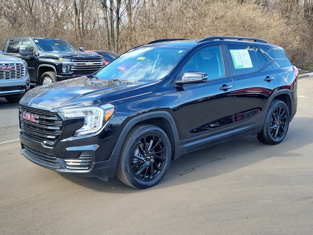 Have you ever wondered where to buy a Certified used car? Look no further! Jake Sweeney is here to Help. If you are in need of a new or used vehicle, we are offering you the ability to shop online and have your vehicle delivered to your home. Come visit us in store as well for a fun, fast, and easy car buying experience! Ebony Twilight Metallic 2023 GMC Terrain SLE FWD 9-Speed Automatic 1.5L DOHC 4-Way Manual Driver's Seat, 4-Way Manual Front Passenger Seat, 8-Way Power Driver Seat Adjuster, Adaptive Cruise Control, Auto High-beam Headlights, Black GMC Center Caps w/Red GMC Lettering, Black Mirror Caps, Bluetooth® For Phone, Brake assist, Darkened Front Grille, Delay-off headlights, Driver & Front Passenger Heated Seats, Driver Convenience Package, Dual-Zone Automatic Climate Control, Electronic Stability Control, Elevation Edition, Lane Change Alert w/Side Blind Zone Alert, Outside Heated Power-Adjustable Mirrors, Power Driver Lumbar Control, Power Programmable Rear Liftgate, Power steering, Power windows, Preferred Equipment Group 3SA, Rear Cross-Traffic Alert, Rear Park Assist, Remote keyless entry, Remote Start, Roof-Mounted Luggage Rack Side Rails, Safety Alert Seat, Side Blind Zone & Rear Cross Traffic, Terrain Pro Safety Plus, Wheels: 19" Gloss Black Aluminum.