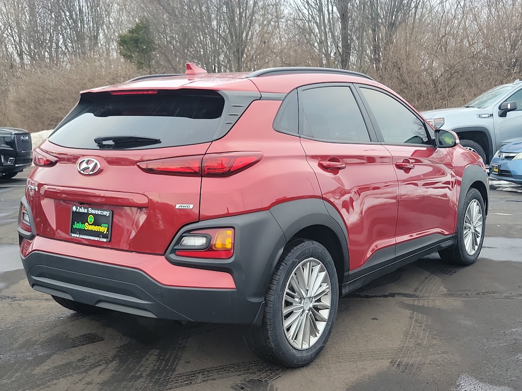 Have you ever wondered where to buy a Certified used car? Look no further! Jake Sweeney is here to Help. If you are in need of a new or used vehicle, we are offering you the ability to shop online and have your vehicle delivered to your home. Come visit us in store as well for a fun, fast, and easy car buying experience! Pulse Red 2021 Hyundai Kona SEL Plus AWD 6-Speed Automatic I4 Air Conditioning, AM/FM radio: SiriusXM, Apple CarPlay & Android Auto, Brake assist, Delay-off headlights, Electronic Stability Control, Emergency communication system: Blue Link Connected Car Service (3-year complimentary subscription), Exterior Parking Camera Rear, Four wheel independent suspension, Front Bucket Seats, Front Center Armrest, Front fog lights, Fully automatic headlights, Heated Front Bucket Seats, Heated front seats, Illuminated entry, Leather Shift Knob, Option Group 01, Panic alarm, Power driver seat, Power moonroof, Power steering, Power windows, Radio: AM/FM/MP3/HD Radio/SiriusXM Audio System, Rear Bumper Applique, Rear window defroster, Remote keyless entry, Speed-sensing steering, Split folding rear seat, Steering wheel mounted audio controls.