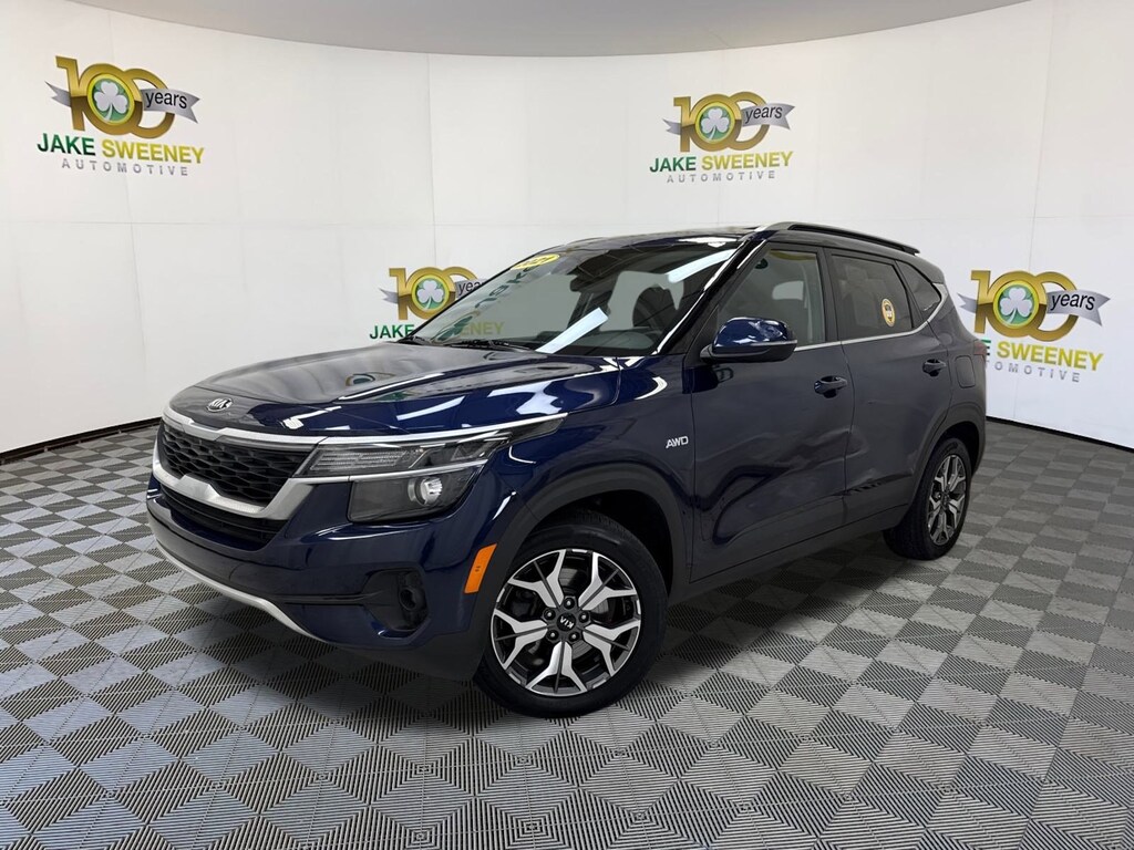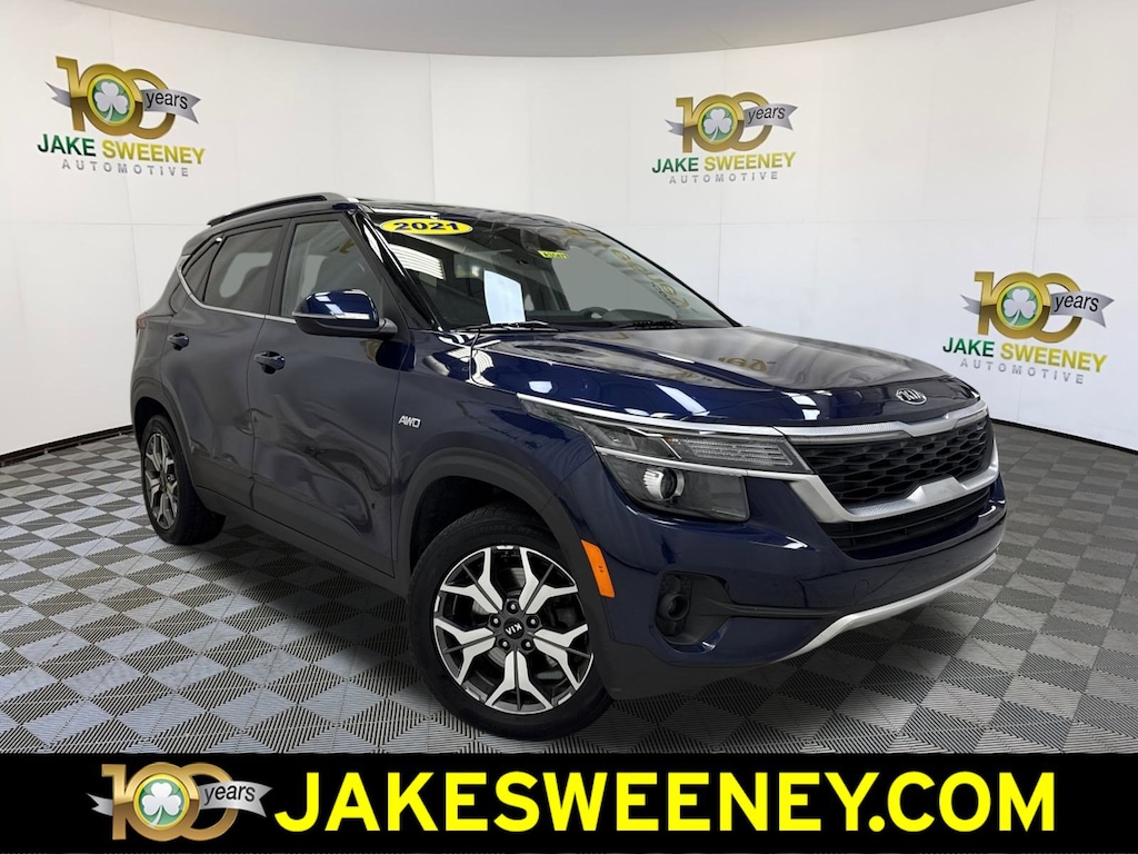 Our sporty One Owner, No Accidents Reported 2021 Kia Seltos EX AWD in Dark Ocean Blue has nimble dimensions that are nearly perfect for city adventures! Powered by a 2.0 Liter 4 Cylinder generating 146hp, connected to a CVT for confident travel. You can also enjoy superior traction in our All Wheel Drive SUV, which gets nearly 31mpg on the highway. Well-engineered and ready for action, our Seltos supplies LED lighting, fog lamps, a sunroof, roof rails, 17-inch alloy wheels, bold black side sills, and front and rear skid plates for off-road style.