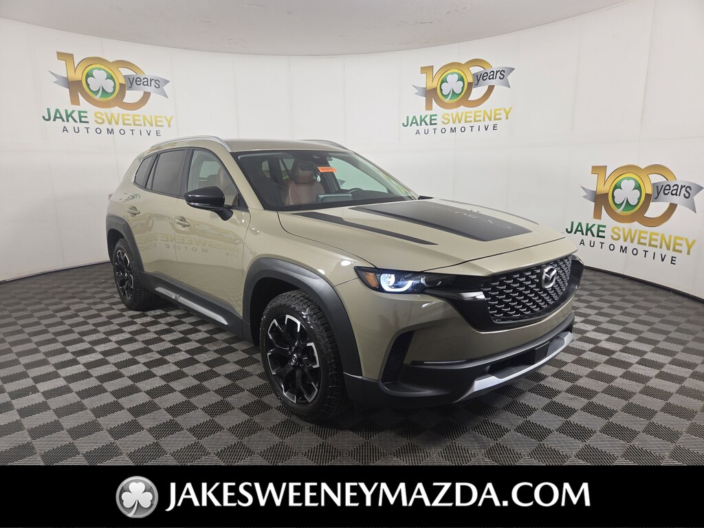 Our Certified 2023 Mazda CX-50 2.5 Turbo Meridian Edition AWD is ready to explore uncharted territory in Zircon Sand Metallic! Motivated by a TurboCharged 2.5 Liter 4 Cylinder that generates 227hp for a paddle-shifted 6 Speed Automatic transmission. This All Wheel Drive SUV also combines that athletic powertrain with sporty handling, and it sees nearly 29mpg on the highway. Our CX-50 greets you with upgraded Meridian styling from exclusive hood graphics, side rocker garnishes, black alloy wheels, adaptive front LED lighting, a power sunroof, a power liftgate, heated power mirrors, and dual exhaust outlets.